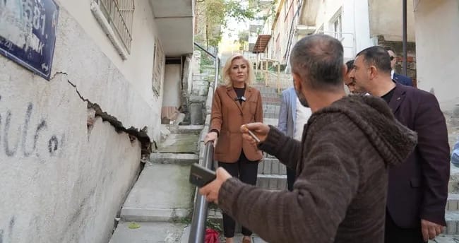 AK Parti İzmir Milletvekili Şebnem Bursalı, Buca Onat Tüneli çalışmalarının Konak Atamer Mahallesi’nde yol açtığı hasarlara dikkat çekti. 2018’den beri süren inşaatın evlerde çatlaklar, zemin ve duvarlarda yarıklar oluşturduğunu belirten Bursalı, “Bir felaket yaşanmadan gerekli adımlar atılmalı,” dedi.