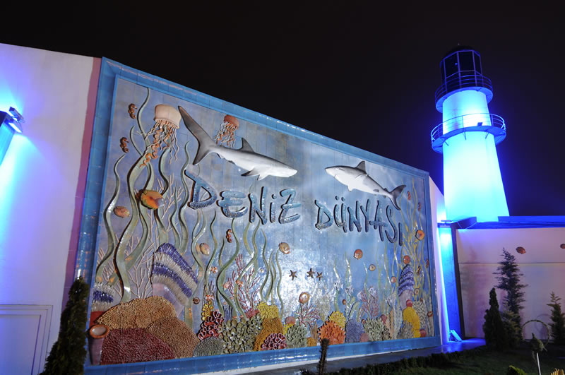 4 bin metrekarelik alana kurulu olan Deniz Dünyası; Deniz balıkları bölümü, tünel akvaryum, tatlı su canlıları bölümü, timsah ve kaplumbağa alanı gibi dört ayrı konseptten oluşuyordu. Ayrıca tesisin engelli çocuklara yönelik dokunma havuzları ile ilköğretim öğrencilerine eğitim verilen seminer salonu da bulunuyordu. Koi balıkları çocuklar tarafından beslenebiliyor, öğrenciler deniz canlıları hakkında belgeseller izleyebiliyordu.