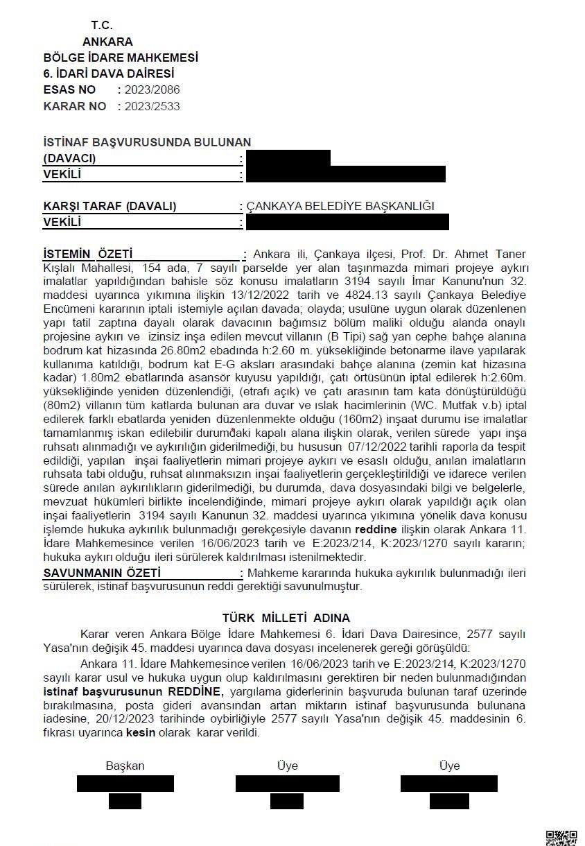 Belediye başkanlarının yıkım kararlarını uygulamadıkları gerekçesiyle yargılandığı hatırlatılarak, Hüseyin Can Güner’e TCK’nın “Görevi Kötüye Kullanma” maddeleri üzerinden uyarı yapıldı. Açıklamada, “Bir şikayet söz konusu olduğu zaman Çankaya Belediye Başkanı da yargı önünde hesap verir… Sizi TCK 257/1 ve 257/2 ilgili maddelerden yargılanmaktan kimse kurtaramaz” ifadelerine yer verildi.
