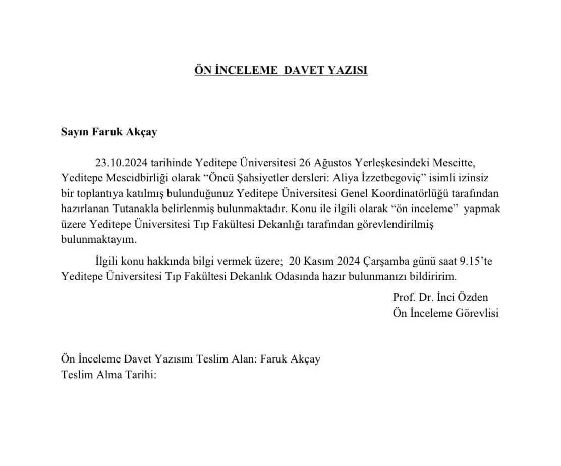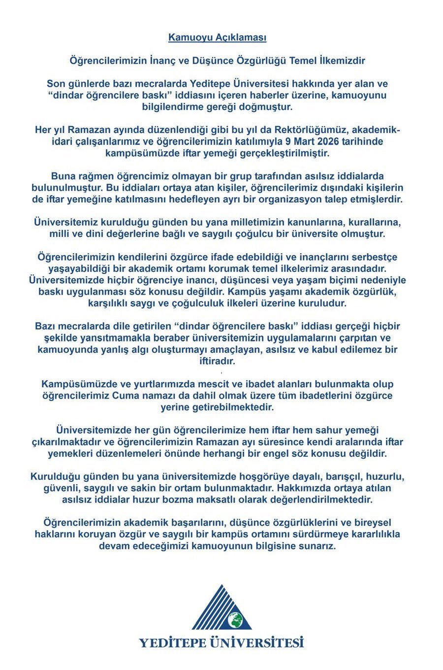 Konuyla ilgili olarak Yeditepe Üniversitesi yönetiminden yapılan açıklama şu şekilde: